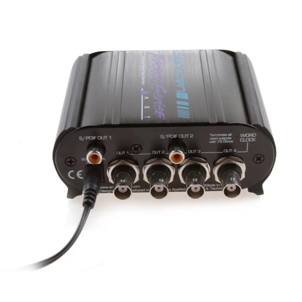 ART SyncGen – генератор сигнала Wordclock – это простой и недорогой способ улучшить производительность цифрового оборудования. С его помощью устраняются случайные помехи, возникающие в результате временных ошибок синхронизации в системах записи. Генератор word-clock обеспечивает сокращение ошибок синхронизации между отдельными приборами и устройствами, составляющими цепь цифровой записи. ART SyncGen, предназначенный для максимальной универсальности, генерирует стабильную ссылку на основе образцово точного времени. Он подключается к цифровому оборудованию с помощью разъемов BNC или коаксиальных S/PDIF входов.