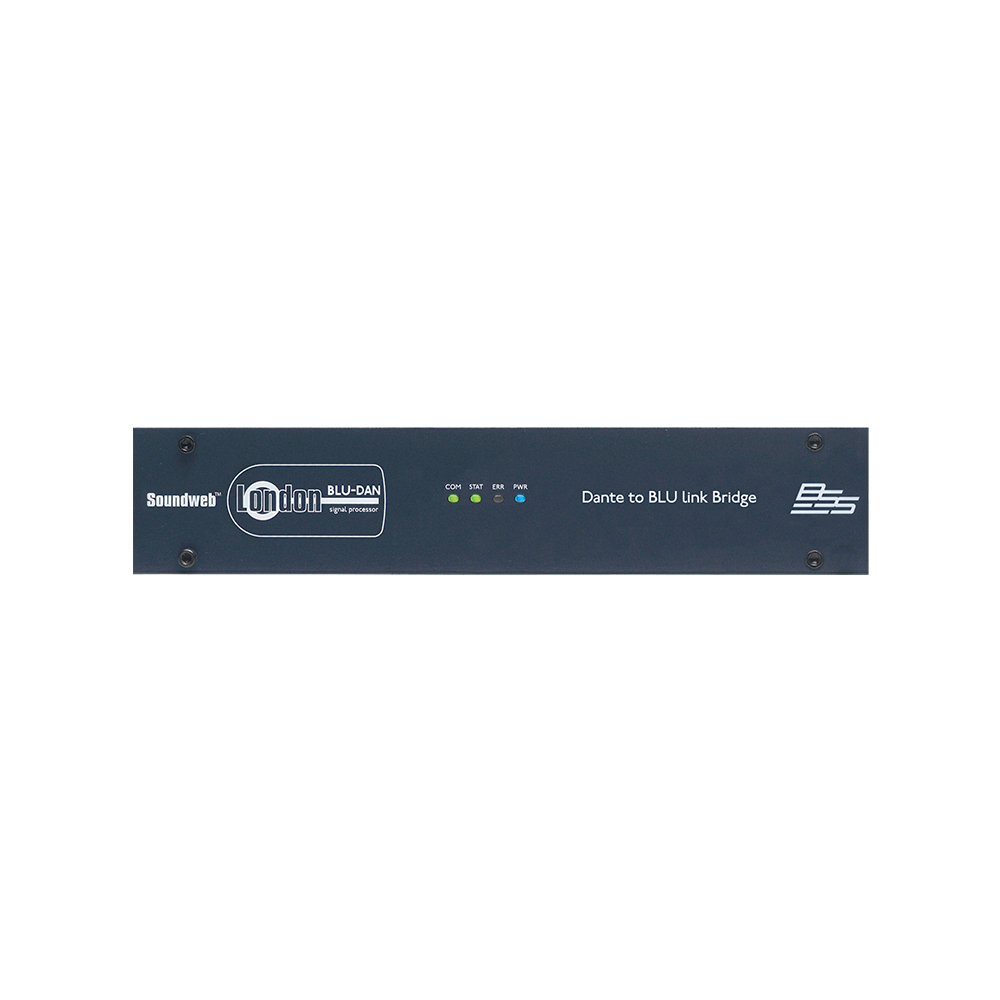 BSS BLU-DAN – это внешний интерфейс, предоставляющий возможность использования Dante и BLU Link. Используя это устройство можно добавить порт Dante устройствам BLU Link. Настройка интерфейса, управление и контроль за функционированием легко и удобно осуществляются при помощи программного обеспечения HiQnet Audio Architect способом «drag and drop», хорошо знакомым всем пользователем системы HiQnet. Наглядная индикация имеется на передней панели. Устройство позволяет одновременно передавать и получать аудио данные по 64 каналам Dante. Для максимальной защиты от сбоев предусмотрена два порта. Управление BSS BLU-DAN осуществляется через дополнительный сетевой разъем Ethernet. Шина BLU link имеет 256 независимых каналов, при помощи стандартного кабеля Cat 5e можно передавать данные между совместимыми устройствами на расстояние до 100 метров. Интерфейс представлен в полурэковом исполнении (1RU).