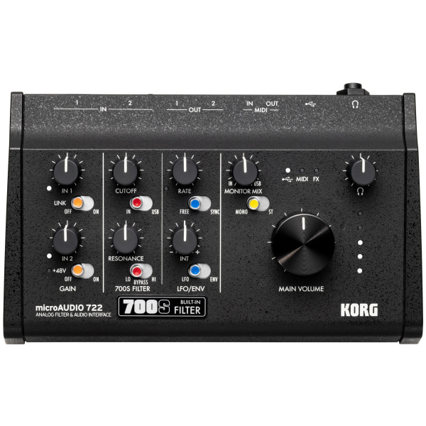 Korg Microaudio 722 - компактный двухканальный USB-C аудиоинтерфейс со встроенным аналоговым фильтром от miniKORG 700S, известным своим теплым, музыкальным характером и отзывчивостью. Его можно использовать как автономный аналоговый фильтр или интегрировать в вашу DAW-систему, предлагая уникальные возможности формирования тембра. microAUDIO 722 обеспечивает чистое, необходимое звучание с простотой и четкостью, идеально подходящая для начинающих и любителей, которым нужен высококачественный звук без лишних сложностей. Предусилители студийного класса тщательно настроены для обеспечения музыкального усиления с минимальным уровнем шума, подчеркивая чистоту звучания без добавления ненужных схем. Модель поддерживает аудио до 24 бит/192 кГц и имеет балансные входы и выходы для высококачественной записи и воспроизведения. Каждый канал серии microAUDIO предлагает универсальные входы Mic/Line/Hi-Z с фантомным питанием 48 В, а также назначаемые шумоподавитель, компрессор и лимитер для плавного, музыкального усиления с минимальным уровнем шума. Ручки на передней панели обеспечивают интуитивно понятное управление, а прямое мониторинг с нулевой задержкой гарантирует мгновенную обратную связь во время записи или живого выступления. Функция Stereo Link позволяет одновременно регулировать оба канала одной ручкой, упрощая балансировку стереоисточников, что идеально подходит для записи аппаратных синтезаторов. Встроенный режим обратной связи позволяет передавать звук с ПК непосредственно в потоковое вещание или DAW без сложной маршрутизации, что идеально подходит для стриминга или сэмплирования! Благодаря подключению через USB-C, microAUDIO также бесперебойно работает со смартфонами и планшетами, что упрощает создание музыки или стриминг на ходу. Кроме того, в модели 722 имеются MIDI вход и выход на разъемах 3.5 мм TRS jack. В комплект также входит ПО KORG Software Bundle, Ableton Live Lite, iZotope Ozone Elements и Filter Ark.