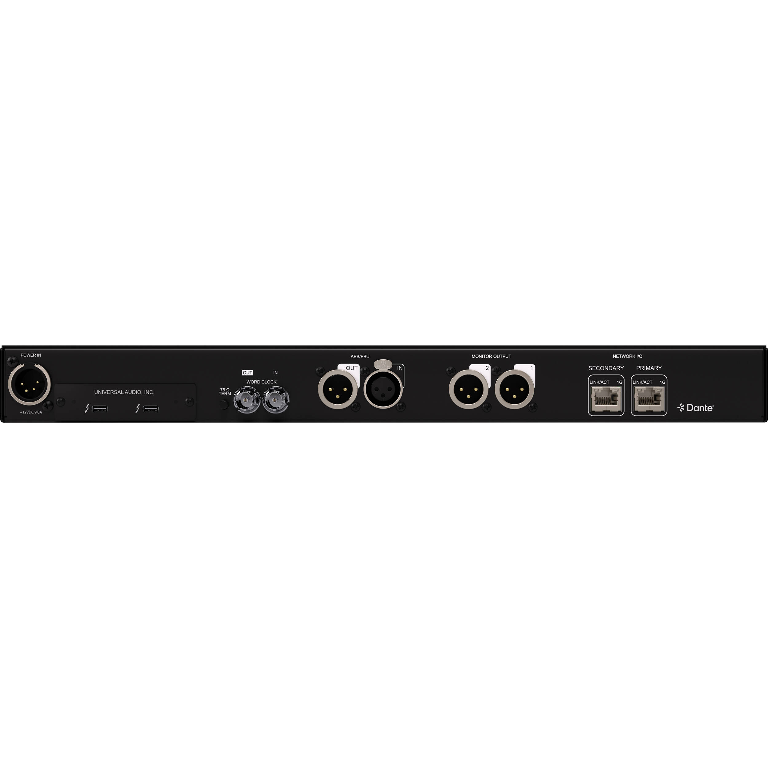 - 2 x XLR для мониторного выхода; 2 x RJ45 для Dante