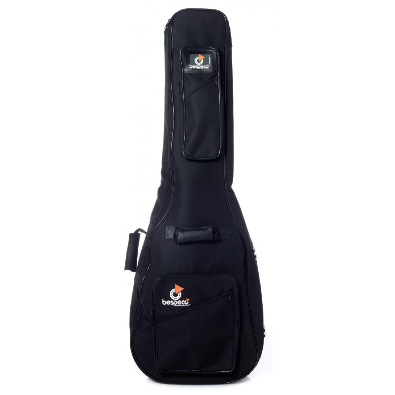 Bespeco BAG240AB - это мягкий чехол для акустической бас-гитары, изготовленный из прочной влагостойкой ткани Oxford 600D, которую часто можно встретить в составе различного обмундирования для туризма. Внешняя кромка сделана из ПВХ, а молния дополнительно прошита нейлоном, который защищает ткань от случайных порезов. Чехол имеет подкладку толщиной 15 мм. Для удобного перемещения с чехлом он оснащен 2 наплечными ремнями, которым можно легко отрегулировать длину. Также здесь есть 2 рукоятки для переноски, одна из которых оснащена застежкой на липучке, а вторая также имеет подкладку внутри. Для хранения аксессуаров, нотных листов или других предметов есть 2 вместительных кармана, каждый из которых предлагает по еще одному дополнительному отделению на молнии. Наконец, в основании чехла находятся каучуковые подставки, которые позволяют безопасно ставить инструмент на пол в вертикальном положении, а также защищают от удара при падении.
