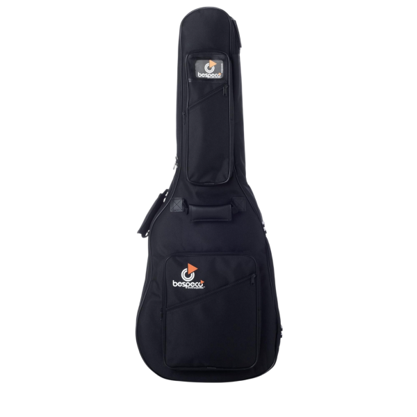 Bespeco BAG310AG - это мягкий чехол для акустической гитары. Он изготовлен из прочного и защищенного от влаги материала Oxford 600D, который часто можно встретить в производстве товаров для профессионального туризма. Внешние границы чехла сделаны из ПВХ, что придает ему дополнительную прочность, а толщина подкладки 25 мм надежно защищает инструмент. Для исключения случайных порезов ткани молния прошита нейлоном. Для удобной переноски в наличии есть 2 мягкие рукоятки, а также регулируемые наплечные ремни. Имеются пара вместительных карманов, в которых можно носить как гитарные аксессуары или нотные листы, так и личные вещи. Для протекции от падений и ударов есть каучуковые вставки, а на верхней его части располагается пластиковая вешалка. С внутренней части имеется дополнительный слой ткани, позволяющий не порвать чехол острыми концами струн на голове грифа.
