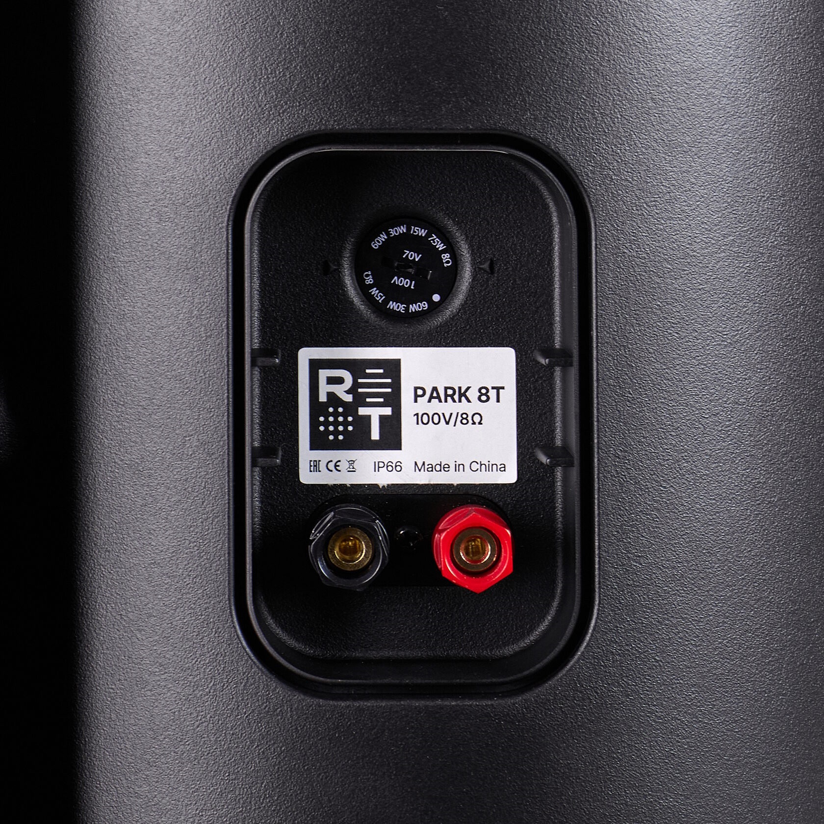 Radiotehnika RT Park 8T - это всепогодная двухполосная настенная акустическая система, оснащенная трансформатором на 70/100 В, а также позволяющая работать с нагрузкой 8 Ом. Модель превосходно подойдет для работы на различных объемных коммерческих объектах, например, в торговых центрах, магазинах, фитнес-клубах, барах, кафе и ресторанах. Всепогодное исполнение корпуса дает возможность постоянной установки на улице для фоновой музыки в парковых зонах, на верандах, на фасадах зданий, а также можно озвучивать площади с фонтанами или помещения с бассейнами. Модель оснащена 8-дюймовым вуфером с полипропиленовым диффузором и 1-дюймовым твитером с шелковым куполом. Динамики обеспечивают чистое и насыщенное звучание в широком диапазоне частот от 70 Гц до 20 кГц (+/-6 дБ). Имеется возможность подключения к усилителю на 8 Ом, номинальная мощность в этом случае составляет 60 Вт. Присутствуют обмотки трансформатора на 7.5, 15, 30 или 60 Вт (70 В), а также 15, 30 или 60 Вт (100 В), что позволяет гибко установить уровень выходной громкости для различных помещений. Уровень максимального звукового давления может достигать 105 дБ. Корпус выполнен из прочного пластика и имеет герметичную конструкцию, надежно защищающую внутренности от различных погодных условий и пыли. Защита соответствует стандарту IP-66. Динамики закрыты металлическим грилем. Установка на стену, потолок или любую другую твердую поверхность осуществляется с помощью встроенного крепления из алюминия, на котором имеются фиксаторы для настройки угла наклона. Возможен как горизонтальный, так и вертикальный монтаж акустики.