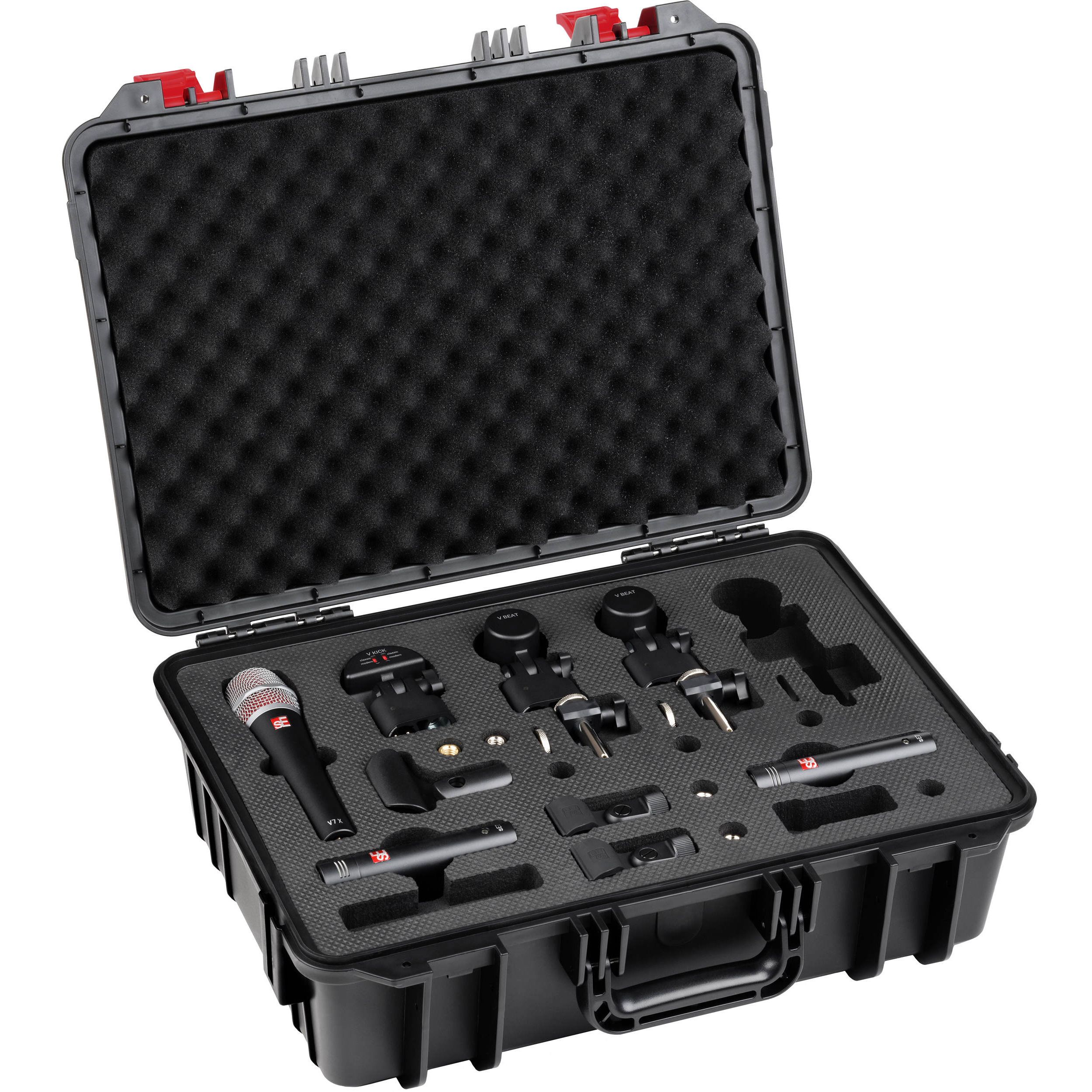 sE Electronics 5 Pack Club - набор из шести микрофонов для ударной установки. Ультра-компактная конструкция входящих в комплект микрофонов, в сочетании с оригинальным креплением V CLAMP позволяют с легкостью и быстротой приступить к работе. V PACK CLUB состоит из одного микрофона V KICK, двух микрофонов V BEAT и трех креплений V CLAMP, одного микрофона V7 X и пары конденсаторных микрофонов sE7 для оверхэдов. Все микрофоны и входящие в комплект аксессуары надежно упакованы внутри прочного пластикового флайт кейса, в котором предусмотрено пустое пространство для вашего любимого хай-хэт микрофона.