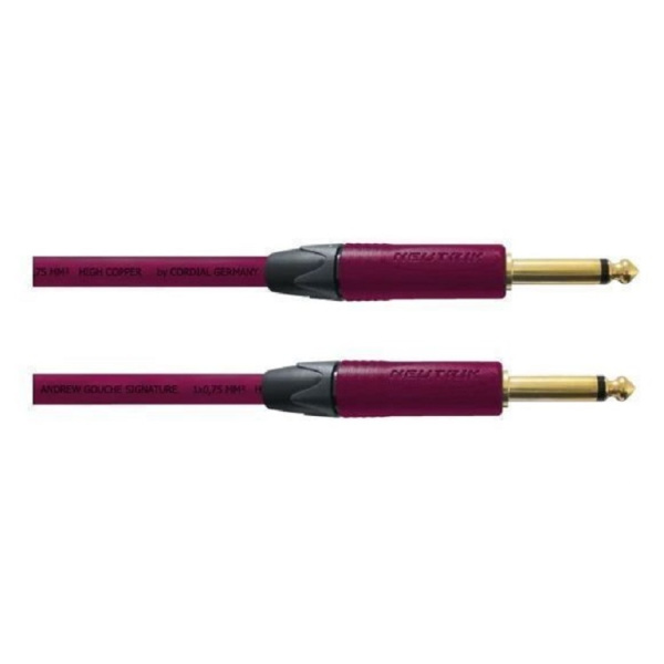 Cordial CSI 6 PP Andrew Gouche - гибкий гитарный кабель для профессиональных музыкантов с разъемами джек моно 6.3 мм - джек моно 6.3 мм. Серия CSI PP ANDREW GOUCHE - это уникальные инструментальные кабели для музыкантов, ценящих необычный дизайн и высокое качество. Этот именной шнур назван в честь инициатора проекта - известного бас-гитариста ANDREW GOUCHE. Плетеный экран из меди сохраняет свою структуру при многочисленных циклах скручивания и надежно защищает от наведенных помех, а дополнительный экран из проводящего полимера снижает микрофонный эффект. Низкое значение емкости кабеля в 88пФ благоприятно влияет на ширину диапазона пропускаемых частот. Особенность структуры проводника 42 x Ø0,15мм - обеспечивает высокую гибкость в сочетании с низкими значениями сопротивления. Цвет кабеля в вместе с особым лаковым покрытием разъемов NEUTRIK (позолоченных для защиты от коррозии) одновременно привлекателен и выделяется: кабель выполнен в бордово-фиолетовом цвете (так называемый "торговый знак" ANDREW GOUCHE). Длина кабеля составляет 6 м.