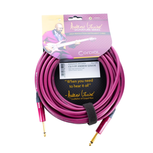 Cordial CSI 9 PP Andrew Gouche - гибкий гитарный кабель для профессиональных музыкантов с разъемами джек моно 6.3 мм - джек моно 6.3 мм. Серия CSI PP ANDREW GOUCHE - это уникальные инструментальные кабели для музыкантов, ценящих необычный дизайн и высокое качество. Этот именной шнур назван в честь инициатора проекта - известного бас-гитариста ANDREW GOUCHE. Плетеный экран из меди сохраняет свою структуру при многочисленных циклах скручивания и надежно защищает от наведенных помех, а дополнительный экран из проводящего полимера снижает микрофонный эффект. Низкое значение емкости кабеля в 88пФ благоприятно влияет на ширину диапазона пропускаемых частот. Особенность структуры проводника 42 x Ø0,15мм - обеспечивает высокую гибкость в сочетании с низкими значениями сопротивления. Цвет кабеля в вместе с особым лаковым покрытием разъемов NEUTRIK (позолоченных для защиты от коррозии) одновременно привлекателен и выделяется: кабель выполнен в бордово-фиолетовом цвете (так называемый "торговый знак" ANDREW GOUCHE). Длина кабеля составляет 9 м.