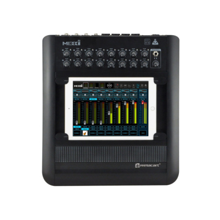 Relacart MIXX16 – это цифровой микшерный пульт с DSP-процессором обработки, управляемый через приложение MIXX16 Digital Mixer на планшетах с Windows 8 или Apple iOS. Он имеет встроенный Wi-Fi модуль, через который происходит подключение к устройствам и синхронизация. Микшер имеет 16 входов и 8 выходов балансного типа. 16 входов реализованы на разъемах XLR, 4 из них комбинированного типа XLR / 1/4" Jack TRS. Ниже в ряд расположены AUX-выходы 6 x 1/4" Jack TRS, они могут быть использованы для подключения дополнительного мониторинга или для подключения дополнительных процессоров эффектов. Мастер-выход выполнен на разъемах 2 x XLR. Для проводного подключения микшера к LAN-сети имеется разъем Net Work RJ-45. На лицевой стороне устройства расположены 16 регуляторов входного уровня, над ними имеются LED-индикаторы перегрузки сигнала. Рядом имеется выход на наушники 1/4" Jack TRS с отдельным регулятором громкости. В микшере установлены микрофонные предусилители вещательного качества. Обработка осуществляется 40-битным процессором с плавающей запятой, установлен 24-битный AD/DA преобразователь. Встроенный цифровой DSP-процессор эффектов включает в себя: компрессор и лимитер, гейт, 4-полосный параметрический эквалайзер, 31-полосный графический эквалайзер, фильтр высоких частот, реверберацию и задержку. Приложение для планшетов имеет интуитивное сенсорное управление, которое охватывает все основные функции микширования. Для каждого канала можно установить свое название и значок, что делает управление простым и интуитивным. В качестве значка можно устанавливать любое изображение из библиотеки пользователя. Микрофонные входы оснащены фантомным питанием +48 В, которое можно включать или отключать отдельно на каждом канале, это удобно для подключения динамических и конденсаторных микрофонов. Микшер имеет низкий уровень шума микрофонных входов и высокий динамический диапазон в 110 дБ.