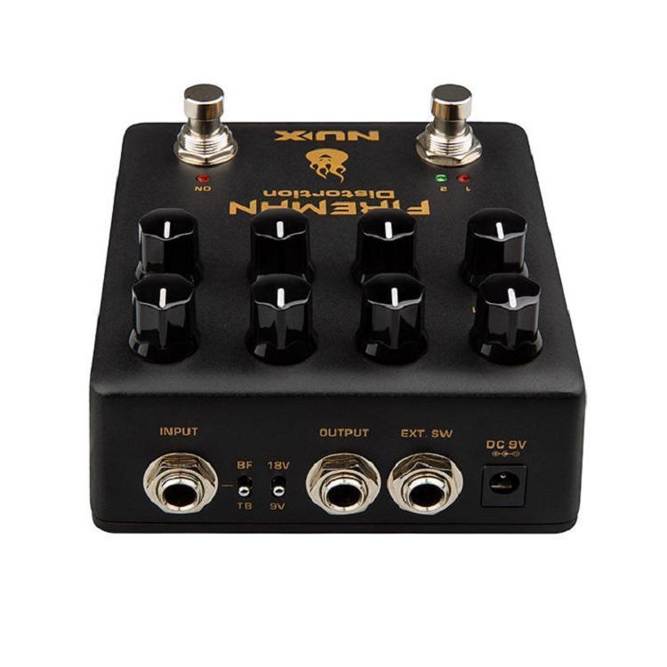 Nux NDS-5 Fireman - это двухканальная педаль дисторшн. Fireman основан на знаменитой педали дисторшн легендарного производителя усилителей. Это очень похожая на усилитель педаль дисторшена с Modern Brown Sound. Nux разработали его с двумя независимыми ручками управления VOLUME и GAIN, чтобы он подходил для ритмического и сольного использования. Fireman предлагает тумблеры True-bypass/Buffer-bypass и 9V/18V. Положение 18 В удваивает рабочее напряжение внутри, чтобы расширить динамический диапазон.