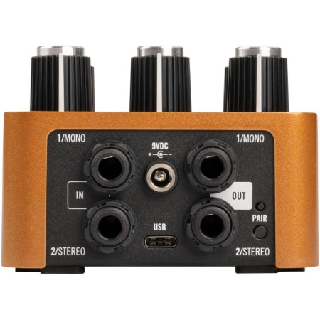 Universal Audio Woodrow '55 Instrument Amplifier - моделирующая гитарная педаль-преамп, воспроизводит звучание легендарных винтажных твидовых усилителей Fender Deluxe. Оригинальная схема Fender Deluxe 53E стала одной из самых копируемых в истории, и породила множество клонов, а также вдохновило многих более поздних производителей на создание своих собственных моделей. Оригинальный 53E имеет всего три регулятора, две громкости, каждая на свой канал и один тон, что воспроизведено и в педали Woodrow ’55, но к ним добавлена регулировка мастер-громкости, а также спикерсимулятор с выбором различных динамиков и акустики помещения. Также Universal Adio добавили три вариации буста. Педальполностью стереофоническая, как по входу, так и по выходу, и допускает множество способов подключения и коммутации. Устройство может использоваться как преамп в линию, непосредственно в микшерный пульт или аудиоинтерфейс, как педаль овердрайва в гитарный усилитель, как дополнительный канал усилителя, в составе педалборда с другими устройствами, а также для реампинга и пост-продакшна. Управление педалью очень простое и интуитивно понятное, как с панели управления, так и через приложение с мобильного гаджета по беспроводному Bluetooth. Регуляторы Inst Vol и Mic Vol аналогичны соответствующим регуляторам громкости каждого из каналов оригинального усилителя, оборудованного четырьмя входами и позволяющего их линковать. Tone – соответственно регулятор тембра, влияющий и на гейн Output отвечает за мастер-громкость педали. Спикерсимулятор предлагает три импульсных отклика: оригинальный Jensen P12R, подзвученный динамическим микрофоном Shure SM57, Celestion Alnico Blue, подзвученный конденсаторным микрофоном Neumann TLM 67 и Celestion Greenback, подзвученный микрофоном Shure SM57. После регистрации педали на сайте производителя, открывается доступ ещё к трём импульсам, кабинету Marshall 4×12 с динамиками Celestion Vintage 30, подзвученному динамическим микрофоном Sennheiser MD 421, корпусу Fender Bassman 4×10 с четырьмя динамиками Jensen P10R, подзвученному микрофоном Shure SM57 и корпусу «блэкфейса» 2×12″ с парой винтажных динамиков JBL D-120F, подзвученному микрофоном Sennheiser MD 421. Регулятор Room добавляет эмбиенса, эмулируя изменение объёма окружающего пространства Также предусмотрено отключение спикерсимуляции, для использования устройства с гитарным усилителем в качестве педали или дополнительного канала. Среди вариаций буста чистое усиление, поднимающее верха с серединой и прибирающее басы во избежание появления перегруза, эмуляция предусилителя из Korg Kaoss Pad 3, и эмуляция предусилителя ленточного эхо Maestro Echoplex EP-3 Регулятор Boost, соответственно отвечает за гейн буста. UAFX Woodrow ’55 позволяет сохранить настройки в пользовательский пресет и оперативно переключаться между ним, и текущими значениями регуляторов, а использование мобильного приложения открывает доступ к ещё большему числу пресетов, а также глобальным настройкам параметров. Гнездо USB Type C позволяет своевременно обновлять прошивку и открывать новые возможности, появляющимися с обновлениями.