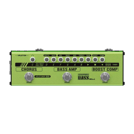 Valeton Dapper Bass Mini MES-2 – напольная компактная педаль мульти-эффектов для бас-гитары. Этот миниатюрный процессор сочетает в себе тюнер, бустер/компрессор, басовый предусилитель, хорус и разнообразные варианты выхода сигнала, делая его идеальным решением для музыкантов, ценящих мобильность без компромиссов в звучании. Тюнер обеспечивает быструю и точную настройку инструмента. Модуль Boost Comp объединяет бустер и компрессор с интуитивно понятными настройками. Блок Bass Amp с гибким эквалайзером (Bass, Mid, Treble), ручкой громкости Volume и ручкой уровня перегруза Gain позволяет получить идеальный тон для любого музыкального стиля, сохраняя отзывчивость к манере исполнения даже при высоком уровне овердрайва. Хорус с регулировками Rate и Depth добавляет объем и глубину вашему звуку. Для подключения к звукорежиссерскому оборудованию предусмотрен балансный XLR-выход. Дополнительный AUX-вход (mini-jack TRS 1/8") позволяет подключать смартфон или MP3-плеер для игры под минусовки, а выход на наушники (mini-jack TRS 1/8") со встроенным регулятором громкости идеален для репетиций. Для подключения инструмента сзади есть вход Jack TS 1/4". Выход также представлен разъемом Jack TS 1/4". Важно отметить, что у MES-2 прочный металлический корпус и надежные ножные переключатели, благодаря чему он сможет хорошо себя показать в долгосрочной перспективе. Получает питание данная модель от адаптера DC 9 Вольт, минус в центре (приобретается отдельно).