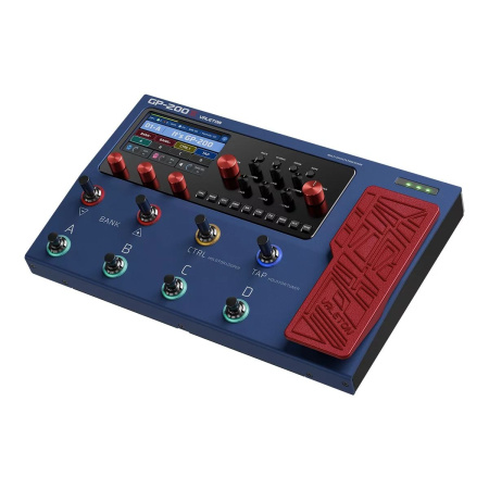 Valeton GP-200X — напольный гитарный процессор эффектов. Здесь есть все, что нужно для домашних занятий, репетиций и живых выступлений: более 240 разнообразных эффектов, встроенная драм-машина на 100 паттернов, лупер с возможностью записи до 180 секунд, интегрированный аудио интерфейс и еще целый ряд полезных функциональностей. Яркий цветной дисплей отображает всю необходимую в данный момент информацию о состоянии устройства. Настраивать пресеты можно прямо с лицевой панели с помощью множества ручек и кнопок, либо через фирменное ПО для компьютеров или мобильных устройств. Мощность процессора позволяет одновременно использовать до 11 блоков эффектов, которые можно установить практически в любой последовательности. Среди доступных обработок в вашем распоряжении широкий выбор эффектов для электрогитар, бас-гитар и электроакустических гитар. Кроме того, здесь есть более 70 моделей эмулированных усилителей, покрывающих все возможные музыкальные стили, будь то фанк, блюз или тяжелый рок. Переключать отдельные эффекты или пресеты прямо по ходу игры помогут 8 ножных переключателей с разноцветной подсветкой. Для подключения инструмента сзади есть вход Jack TS 1/4". Основной стерео выход здесь представлен парой разъемов Jack TS 1/4" и парой коннекторов XLR. Выход на наушники mini-jack TRS 1/8" позволит вам комфортно играть через процессор в любое время суток не используя при этом дополнительное оборудование вроде комбоусилителей. Аудио вход mini-jack TRS 1/8" открывает возможность подключать к данной модели внешние устройства воспроизведения (смартфоны, планшеты) и заниматься под ваши любимые песни. Для подключения дополнительного футсвитча или педали экспрессии здесь предусмотрен вход Jack TRS 1/4". Также на задней панели находится порт USB Type C для подключения к компьютеру, предоставляющему доступ к функциям аудиоинтерфейса, обновлению прошивки, загрузки внешних импульсов и настройки пресетов через фирменное приложение. Вдобавок упомянем вход/выход MIDI и переключатель заземления Ground/Lift.