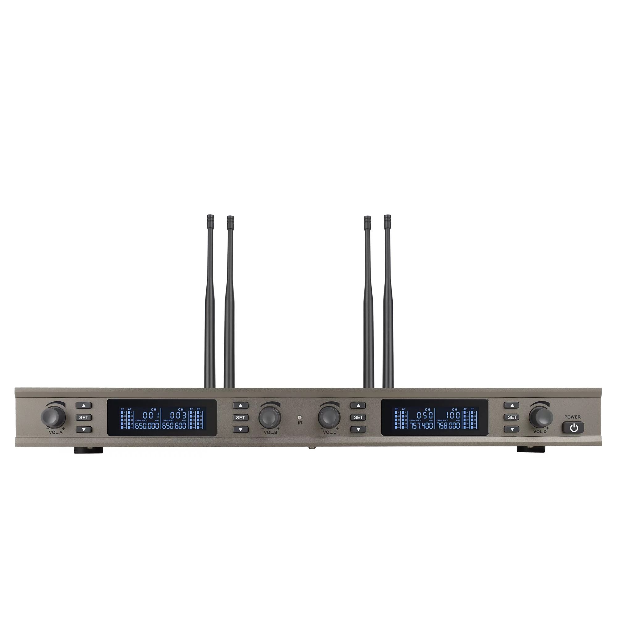 Axelvox DX800FC - высококачественная четырехканальная беспроводная цифровая вокальная радиосистема профессионального уровня с DSP, состоящая из четырех микрофонов и четырехканального приемника рэк 1U. Станция способна анализировать эфир и автоматически находить оптимальные (свободные) частоты для работы. Расширенный частотный диапазон 650 - 758 МГц.