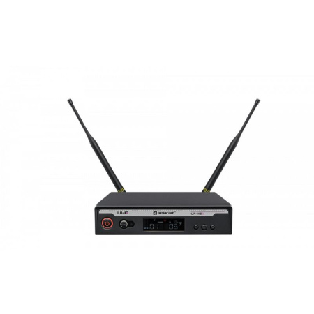 Relacart UR-111SMH - это радиосистема, включающая в себя одноканальный приемник UR-111S и ручной динамический микрофон с встроенным передатчиком UH-1. Она применяется в клубах, конференц-залах, караоке и барах, подходит для выступлений среднего и малого формата. Приемник имеет прочный металлический корпус размером 1/2 1U по стандарту EIA, его можно разместить на столе или вмонтировать в стойку. В центре лицевой панели устройства имеется яркий информативный LCD-дисплей, он отображает рабочую частоту, выбранный канал, силу сигнала и состояние заряда батарей передатчика. Система работает в широком диапазоне радиочастот 522 - 936 мГц. Приемник оснащен функцией автоматического сканирования частот, которая сканирует диапазон и выбирает наименее загруженную, свободную от помех частоту. Приемник и передатчик оснащены инфракрасным портом, он позволяет быстро передавать выбранную частоту в передатчик. Для защиты от возможных помех и наводок, исходящих от других устройств, имеется система PLL и Noise Lock. На задней стороне приемника расположен балансный выход XLR, а также продублированный небалансный выход 1/4" TS Jack. Далее расположены две антенны съемного типа. Система имеет дальность работы 60 метров в открытом пространстве. Ручной динамический микрофон с встроенным передатчиком имеет яркий OLED-дисплей, на котором отображается уровень заряда аккумулятора, выбранная рабочая частота и канал. Динамический капсюль микрофона сменного типа, при необходимости можно заменить на конденсаторный, который приобретается отдельно. Передатчик получает питание от двух батареек типа АА, время работы от алкалиновых батареек около 10 часов. Микрофон имеет прочный корпус и эргономичный дизайн, благодаря чему его удобно использовать.