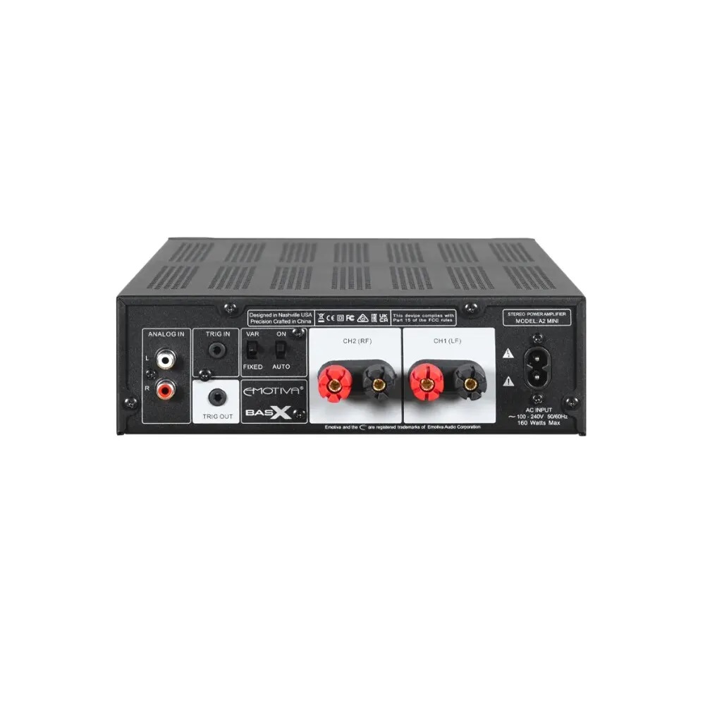 Emotiva A2m - это двухканальный усилитель мощности, обеспечивающий 50 Вт/канал на 8 Ом и 90 Вт/канал на 4 Ом, с номинальным коэффициентом нелинейных искажений+шум <0,1% и отношением сигнал/шум по шкале А, равным 112. дБ. BasX A2m оснащен тем же высококачественным усилителем класса A/B и полноразмерными пятиполосными клеммами для крепления динамиков, что и другие наши усилители мощности BasX, но использует усовершенствованный импульсный источник питания, что способствует его компактному форм-фактору и эффективному использованию энергии. A2m можно использовать как основу для отличной небольшой стереосистемы — с отдельным предусилителем или без него. Его небольшой размер делает его идеальным решением для ситуаций, когда пространство ограничено или когда несколько двухканальных усилителей будут использоваться для питания нескольких различных зон или наборов объемных или верхних громкоговорителей. A2m также имеет уникальную схему выхода на наушники, которая способна обеспечить отличное качество звука из широкого спектра как обычных, так и сложных наушников.