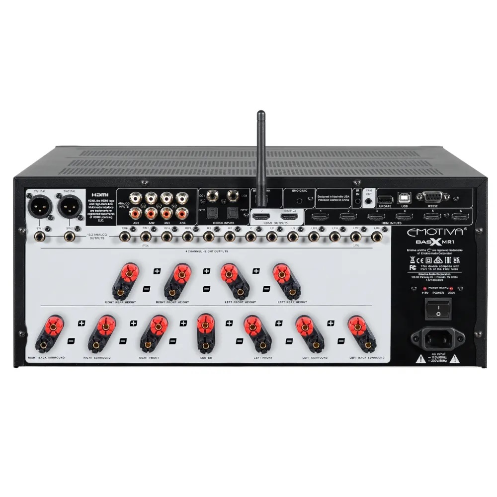 Emotiva MR-1 - многоканальный киноресивер с поддержкой Dolby Atmos и DTS:X. Киноресивер BasX MR1 сочетает в себе высокопроизводительный 13,2-канальный процессор объемного звука и 11-канальный усилитель мощности аудиофильского качества в одном шасси. Раскройте свои истинные возможности иммерсивной системы объемного звучания благодаря лучшей в своем классе мощности, запасу мощности и эффективности. Секция усилителя BasX MR1 объединяет 11 каналов сильноточного дискретного усиления мощности аудиофильского класса класса A/B. Используя сложный источник питания класса H, управляемый массивным тороидальным силовым трансформатором мощностью 1000 ВА, MR1 обеспечивает непревзойденную эффективность. Настоящий несжатый многоканальный объемный звук через eARC обеспечивает бескомпромиссную игровую производительность и простоту подключения. Силовой трансформатор Emotiva MR-1 мощностью 1000 Вт. Он питает блок питания Soft Switch класса H, обеспечивающий высокую эффективность, холодную работу и надежную работу. Emotiva MR-1 оснащен 6 видеовходами HDMI 2.0b, каждый из которых поддерживает видеоформаты 4K UHD HDR, включая eARC. Мощные аналоговые устройства SHARC DSP поддерживают новейшие форматы Dolby Atmos, Dolby Surround, DTS, DTS:X, DTS Neural X и другие популярные режимы. MR1 имеет возможность настроить ваше устройство в соответствии с требованиями вашей комнаты. Независимо от того, используете ли вы специальную систему 2.1, традиционную систему объемного звучания 7.1 или систему Atmos 7.2.4 или 5.2.4 или DTS:X. Обработка доступна до 13,2 каналов с дополнительным 2-канальным усилителем. Прямой доступ ко всем входам, включая выбор выходов HDMI. Настраивайте на лету с помощью эксклюзивной функции Live Trim для всех основных групп динамиков: сабвуфера, центра, верхних АС и колонок объемного звучания.