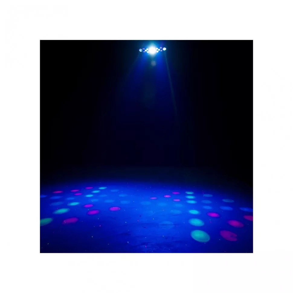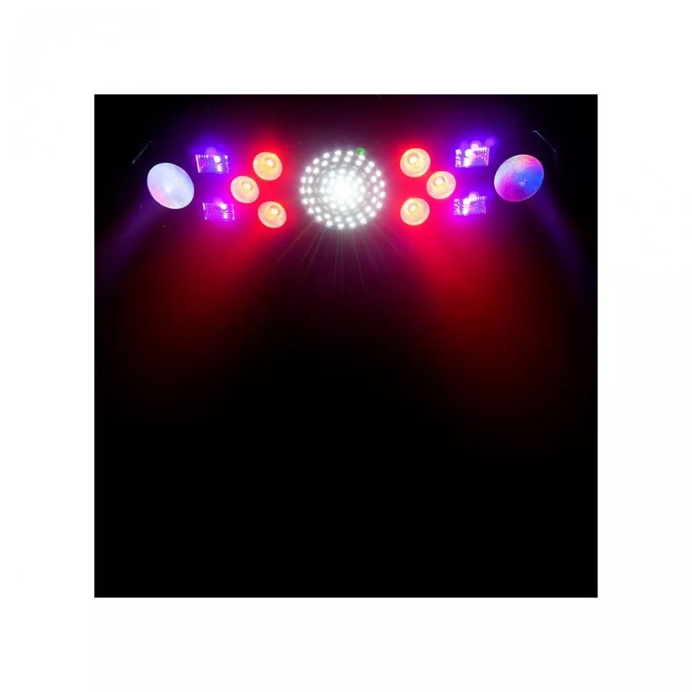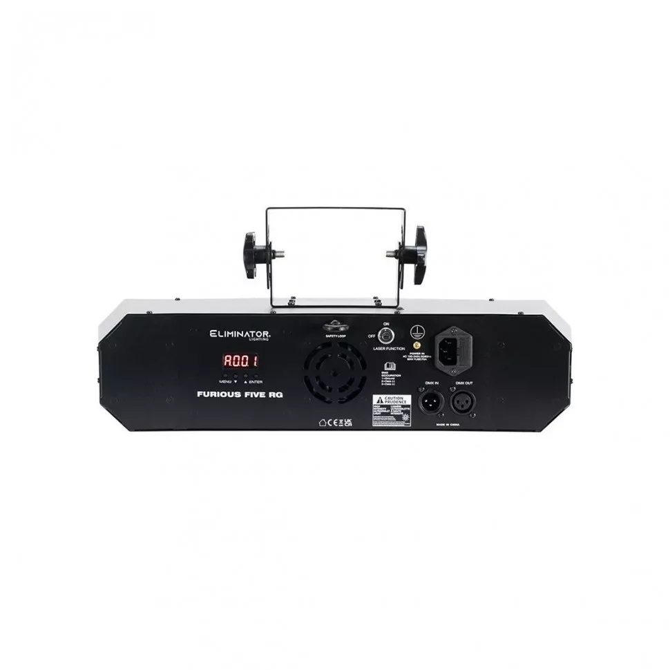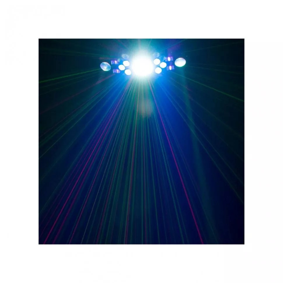 ADJ Furious Five RG - это многофункциональный световой прибор, сочетающий в себе 5 эффектов. Это уникальное устройство, отлично подходящее для передвижных площадок, а также для работы в барах и клубах с ограниченным пространством, создает полноценное световое шоу с использованием дерби и лазерных лучей, УФ-излучения и цветной заливки, а также стробоскопических эффектов. В самом центре светильника находится лазерная апертура, которая проецирует бесчисленное количество дифрагированных лучей, генерируемых двумя лазерными диодами (70 мВт зеленого и 100 мВт красного). Вокруг апертуры размещены 81 белых светодиодов SMD 5730, которые формируют стробоскопический эффект с регулируемой скоростью. С каждой стороны прибора расположены 6 светодиодов 4-в-1 мощностью 3 Вт (красный, зеленый, синий, белый), которые создают яркие цветовые оттенки, а также 4 УФ-светодиода CREE мощностью 3 Вт. Наконец, по обе стороны светильника расположены две линзы-дерби, каждая из которых использует 8 красных, 6 зеленых, 6 синих и 6 белых светодиодов для проецирования анимированных точечных рисунков и создания захватывающих эффектов в пространстве.