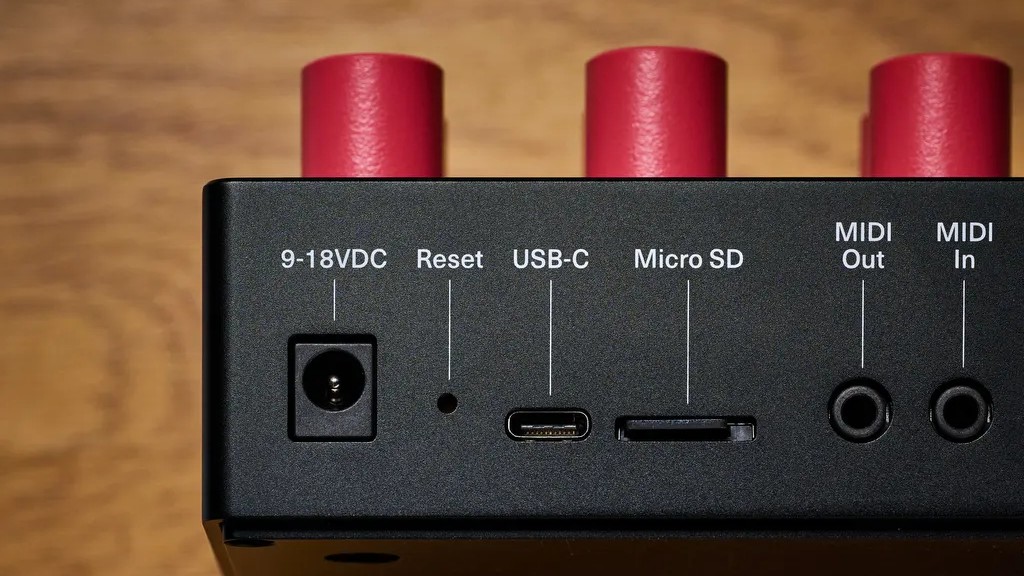 • USB, MIDI (через 3,5‑мм разъёмы), слот microSD для пресетов и прошивок, вход для экспресс-педали, питание 9–18 В DC (адаптер не прилагается).