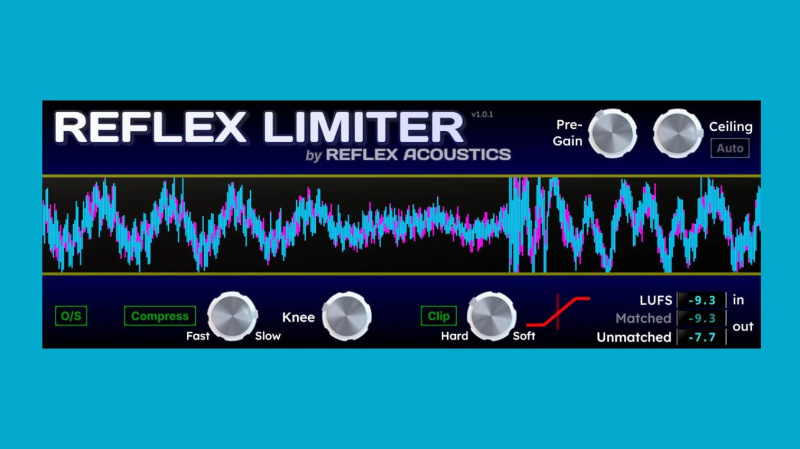 По словам Reflex Acoustics, Reflex Limiter — это «бесплатный, легкий лимитер, который можно использовать где угодно». В нем быстрый look-ahead компрессор с регуляторами Time и Knee, за которым следует клиппер. Разработчик утверждает, что такая конструкция снижает нагрузку на клиппер, в результате чего звук становится чище. Компрессор и клиппер можно использовать по отдельности.