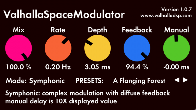 ValhallaSpaceModulator — это “бесконечный” flanger / doubler. Штука в том, что в нем, как и в случае с Supermassive, большая часть функционала скрыта за минималистичной панелью управления: