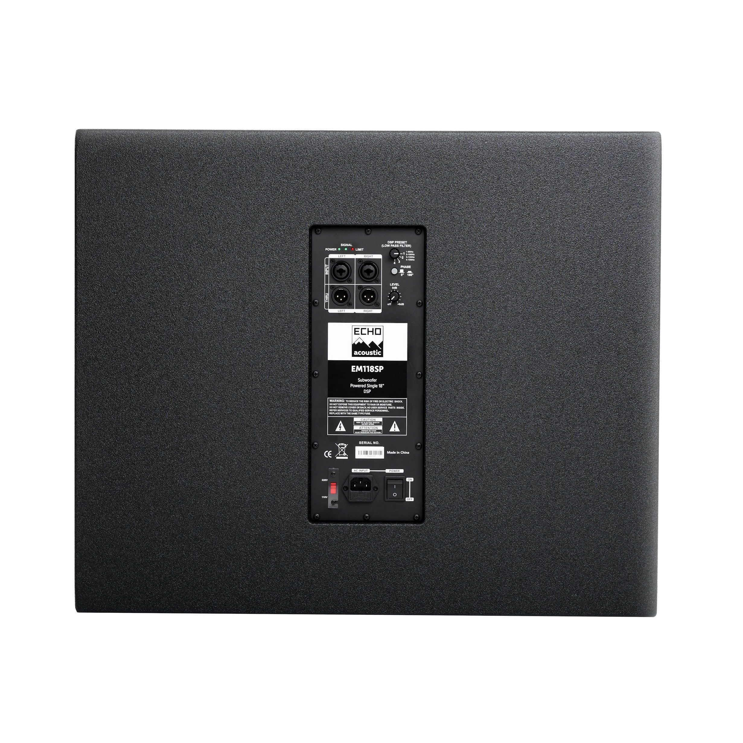Echo Acoustic EM118SP - это компактный активный сабвуфер с фазоинвертором, предназначенный для усиления низкочастотных характеристик полнодиапазонных систем: Echo Acoustic EM112P, EM115P и EM112SMP. Сабвуфер идеально подойдёт для площадок небольшого и среднего масштаба и предназначен для воспроизведения широкого спектра контента - от живой музыки до DJ-сетов. EM118SP оснащен встроенным DSP, благодаря чему можно быстро адаптировать звучание системы под конкретную ситуацию, в том числе под работу с сателлитом иного производителя. Просто выберите необходимый встроенный пресет с помощью переключателя на задней панели. Корпус EM118SP изготовлен из фанеры высокой плотности и оснащен перфорированной металлической решёткой. Наличие 24 точек крепление М10 позволит осуществить подвесное размещение сабвуфера.