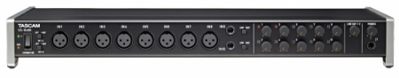 Tascam US-16x08 - USB аудиоинтерфейс с 16 входами и 8 выходами. Интерфейс позволит вам записать 16 микрофонов и инструментов на ваш компьютер с чистым звуком и специальными возможностями для работы с большими проектами. Восемь микрофонных предусилителей Ultra-HDDA обеспечивают чистейшую и самую тихую работу в своем классе с усилением 56dB. Также доступно 8 линейных входов, 2 из них с переключателями для прямого подключения гитары, восемь балансных выходов, два с контролем уровня на передней панели. На борту имеется встроенный DSP микшер для сведения с низкой задержкой. Каждый канал оснащен 4х-полосным EQ и компрессией. US-16x08 может использоваться как автономный микрофонный предусилитель. Имеется поддержка Mac и Windows и iOS. Модель имеет эргономичный наклонный дизайн для настольного использования или установки в рэк. В комплект также входит USB-кабель, крепления для установки в рэк и АС адаптер.