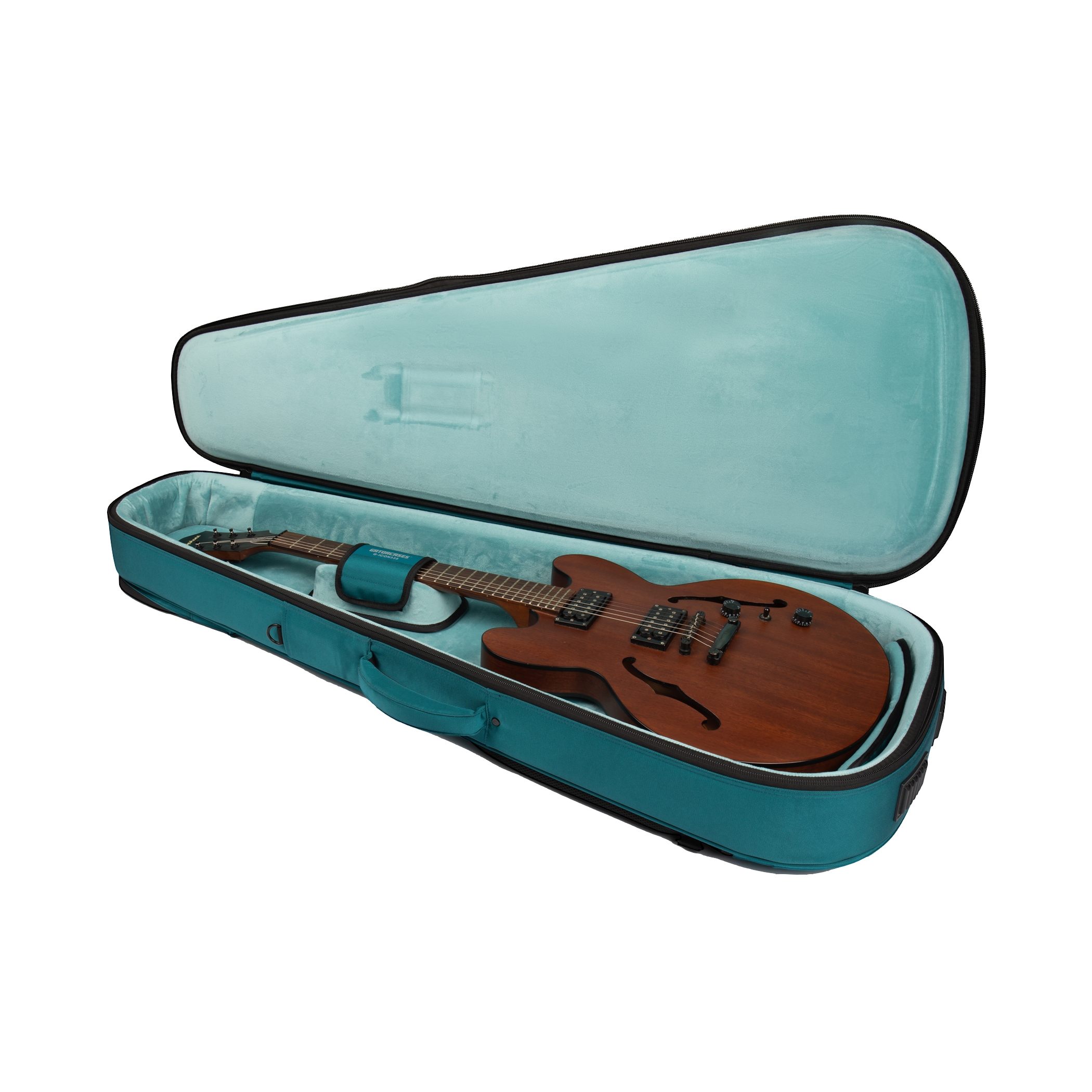 Gator G-ICON335 - плотный полужесткий чехол для электрогитары типа Gibson ES-335 и аналогов. Изготовлен из нейлона с мягкой внутренней подкладкой из красного бархата. Модель имеет прочные лямки рюкзачного типа, мягкие и эргономичные ручки. Съемный блок с фиксатором для грифа обеспечивает безопасность при транспортировке. Также имеется большой карман для аксессуаров и дополнительный чехол для защиты от дождя. Кроме того, есть резиновые бамперы сбоку и снизу для различных вариантов переноски.