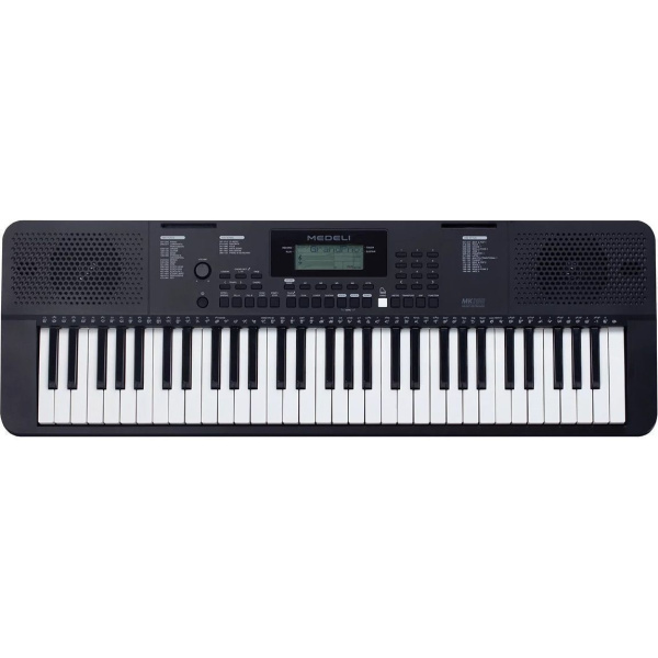 Medeli MK100 - многофункциональный синтезатор начального уровня. Интуитивно понятный пользовательский интерфейс прост в использовании и поможет вам без проблем найти нужные тембры и ритмы. Благодаря USB-подключению, MEDELI MK100 можно использовать в качестве MIDI-клавиатуры совместно с вашими любимыми VST-инструментами. 480 разнообразных высококачественных тембров открывают безграничные возможности при использовании MK100 в любых музыкальных стилях. Для большей выразительности в синтезаторе предусмотрено гнездо для педали сустейна, а также вход для подключения микрофона. MEDELI MK100 оснащен всеми необходимыми функциями для уроков музыки и станет отличным выбором для начинающих клавишников.