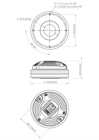 драйвер, неодим, 8 Ом, 120 Вт, 112 dB, 800...20000 Гц, выход 1.4"