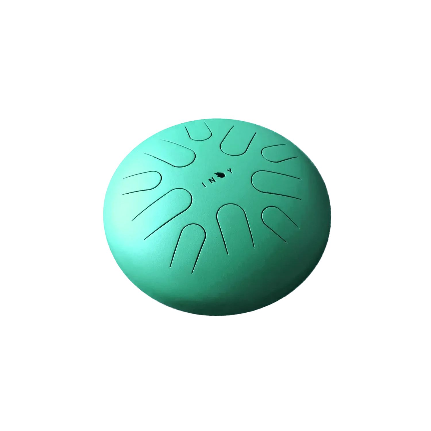 Inoy 22 см Бирюзовый Муар - яркий стальной глюкофон диаметром 22 см. Глюкофон (steel drum, hang drum и др.) - популярный современный музыкальный инструмент лепесткового типа, настроенный по нотам. Он развивает чувство ритма, творческие способности, моторику, и слух. Глюкофон используют в музыкотерапии, а также для медитации, снятия стресса и гармонизации. Данная модель диаметром 22 см имеет 8 круглых лепестков. Модель настроена в строе С (до мажор). В комплект входят также 2 палочки для игры.
