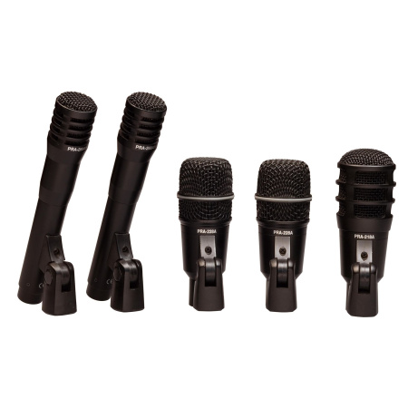 - Комплект поставки: 1) PRA-218A микрофон для бас-барабана - 1 шт. 2) PRA-228A микрофон для томов - 2 шт. 3) PRA-268AH микрофон для тарелок - 2 шт.4) YA01 резьбовой переходник - 5 шт. 5) пластиковый кейс - 1 шт. Все микрофоны имеют встроенное крепление на стойку или держатель