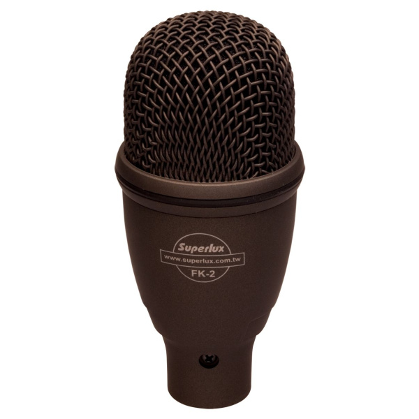 Superlux FK2 - это динамический микрофон, который лучше всего подходит для подзвучки низкочастотного сигнала, особенно для большого барабана и других инструментов низкого регистра.