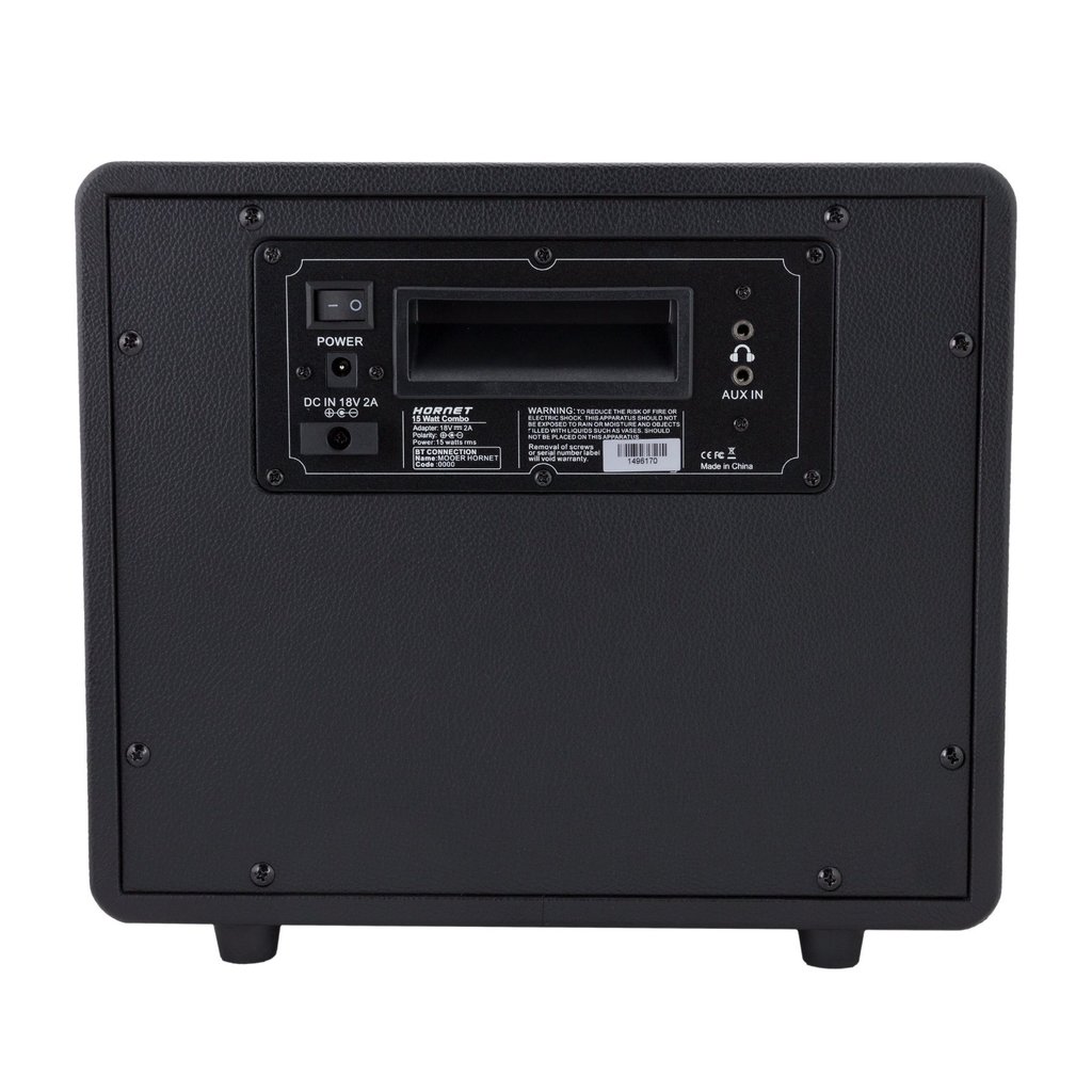 Mooer Hornet 15 - компактный моделирующий гитарный комбо с Bluetooth мощностью 15 Вт. Комбо содержит 9 моделей усилителей, 9 эффектов (три секции - модуляция, реверберация, дилей) и 9 пресетов для хранения комбинаций перечисленного с настройками. При общей в целом функциональности и характеристиках между собой комбо серии Hornet отличаются списком цифровых моделей, что дополнительно подчеркивается цветом. Переключение пресетов осуществляется удобным селектором спереди, доступ ко всем настройкам и режимам обеспечен на верхней панели. Управление эффектами очень простое, а секции модуляции и дилея имеют независимые кнопки Tap Tempo. Точный тюнер так же включается отдельной кнопкой на верхней панели, и его показания хорошо отображаются на ярком LED дисплее. Благодаря широкополосному динамику HORNET отлично воспроизводят музыку и мультимедийное аудио. Подключить внешний источник можно через вход AUX или по Bluetooth. Все пресеты включают в себя эмуляцию кабинетов, поэтому звук комбо прекрасно звучит, как через динамик, так и через наушники.