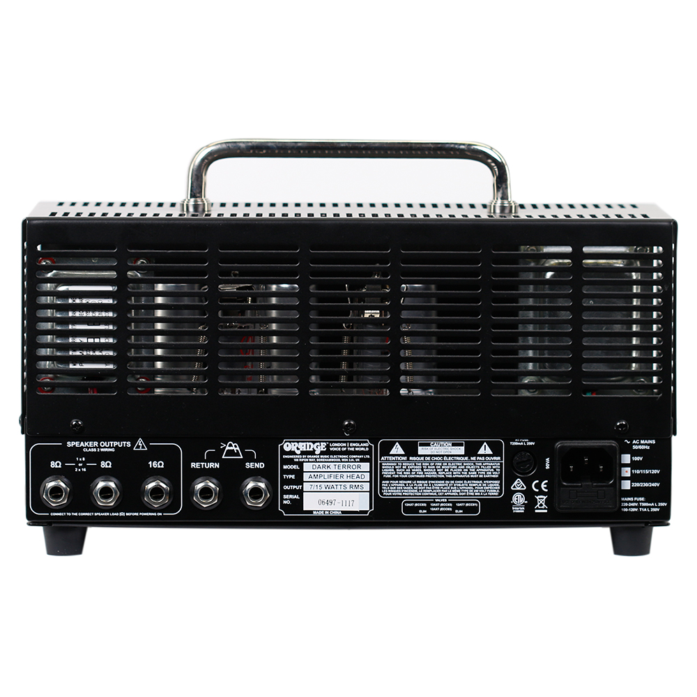 Orange Dark Terror – мускулистый ламповый бультерьер бойцовской породы. Этот компактный одноканальный усилитель создан специально для тех, кому нужен в первую очередь хай-гейн. Позаимствованная у серии Thunderverb настройка Shape очень гибко структурирует профиль звука, обеспечивая удивительно богатую для усилителя с одним каналом и тремя ручками на все про все палитру звучания. Возможность понижения мощности с 15 до 7Вт не только помогает вписать громкость в домашние масштабы, но и дает в распоряжение дополнительные возможности перегрузки выходных ламп. Петля эффектов с ламповым буфером дает еще одно измерение звучания.