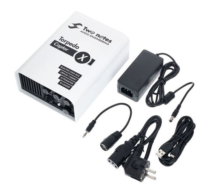 Two Notes Torpedo Captor X 16 Ohm - 16-омный дибокс, аттенюатор, кабинет-симулятор, загрузчик импульсов, стерео экспандер и подавитель шума. Аттенюатор позволяет играть на любой удобной громкости без потери естественного звучания. Можно использовать Captor X как лоадбокс. Для этого имеются два XLR выхода и один "джековый" на наушники. Звук усилителя сохраняет все свое благородство и динамичность. Линейный сигнал может быть обработан импульсами кабинетов и микрофонов топового класса. Управлять прибором можно с компьютера и мобильных устройств. Доступно 32 виртуальных кабинета, 8 виртуальных микрофонов и 8 эмуляций комнат в комплекте. Имеется кнопка PRESET для моментального возврата к любимым настройкам. Также доступны встроенные эффекты реверберации, шумоподавления и параметрический эквалайзер и софт Torpedo Wall of Sound в комплекте.