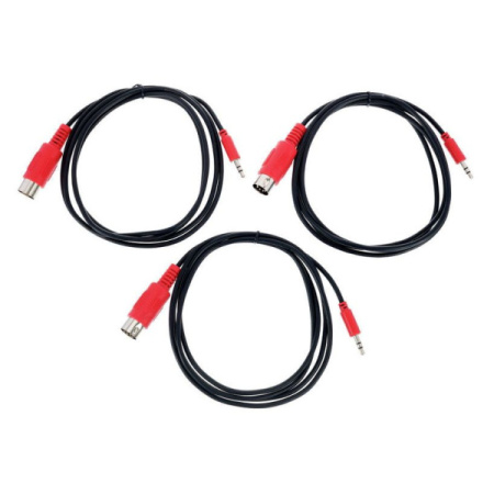 Befaco TRS-MIDI Cable A - комплект кабелей с разъемами TRS 3.5 мм – 5-pin DIN «папа». Длина каждого кабеля составляет 1,5 метра. Совместимы с девайсами от Akai, Korg, Make Noise, ADDAC, Critter & Guitari, Dreadbox, Intellijel, Teenage Engineering, Twisted Electrons, Elektron и так далее. В наборе три кабеля.