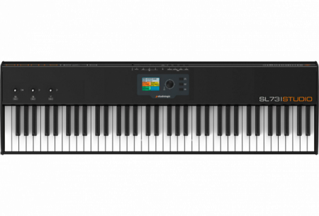StudioLogic SL73 Studio - мобильный 73-клавишный USB/MIDI контроллер с молоточковой механикой. Данное устройство оборудовано полновзвешенной клавиатурой с функцией послекасания, выполненной по технологии Fatar TP/100LR. Данная клавиатура предоставляет пианистам выразительный инструмент для выступлений на сцене или студийных сессий и замечательно подходит для гастролирующего музыканта. Легкая клавиатура заключена в прочный металлический корпус с деревянными торцами, которые обеспечивают удобство и безопасность при транспортировке. На передней панели расположен большой цветной ЖК-дисплей, который легко читается в условиях слабой освещенности и обладает простым и интуитивно понятным интерфейсом. Удобный энкодер помогает быстро перемещаться по всем функциям устройства. Три программируемых контроллера предоставляют прямой контроль над любыми параметрами звука во время живых выступлений. В комплект также входит педаль PS/100, адаптер питания и ПО SL Editor.