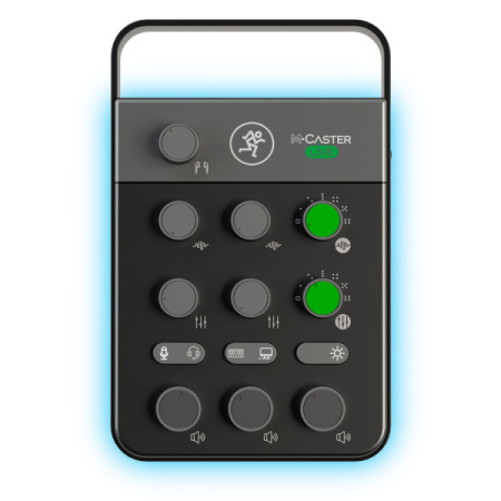 Mackie MixCaster Live - портативный стриминговый микшер с USB-интерфейсом. Мобильный микшер предназначенный для стримов и прямых трансляций. Прибор имеет встроенный USB-аудиоинтерфейс и подключается к смартфону либо к компьютеру. В устройстве имеется несколько блоков эффектов для разных случаев — ContourFX (студийные настройки и улучшения) и StreamFX (эффекты изменения голоса). В микшере 3 канала микширования, он оснащен тремя входами Jack 1/8" TRS для гарнитуры и медиаплееров, есть отдельный XLR вход для микрофона, поддержка фантомного питания, два выхода на наушники и мониторы типа Jack 1/8" TRS , два порта USB-С. Микшер работает как с динамическими, так и с конденсаторными микрофонами благодаря наличию XLR входа с фантомным питанием. Настроить пульт для трансляций достаточно легко — нужно подключить микрофон, настроить эффекты и все готово для выхода в прямой эфир. MixCaster Live отлично работает с зеркальными камерами (для этого имеется линейный выход), а также с многими смартфонами и гарнитурами. У MixCaster есть возможность принимать звонки на стриме, а собеседник не будет слышать свой голос благодаря функции MixMinus. Микшер имеет управляемую RGB подсветку из 7 цветов, которая будет отлично смотреться с любым набором оборудования. В дальних поездках и везде, где необходима портативность, прибор может работать от внешнего USB аккумулятора.