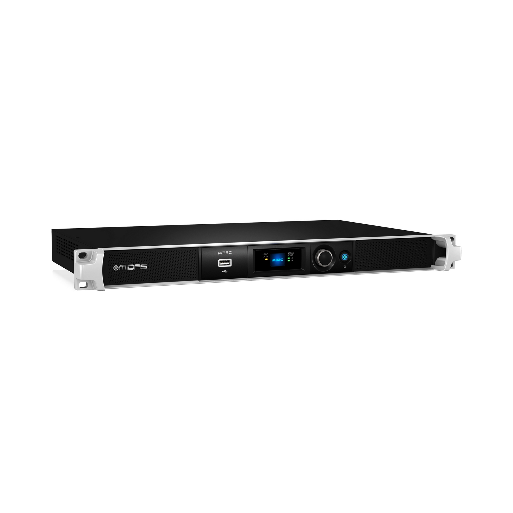 Модель M32C это сверхкомпактная версия, представляющая собой микширующий модуль в рековом корпусе высотой всего 1U. Управление блоком осуществляется по сети и с помощью програмы MIDAS Apps для iPhone и iPad