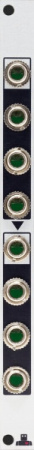 - Верхняя секция нормирована к нижней секции. Звуковой или CV-сигнал можно дублировать шесть раз, или два отдельных сигнала можно умножить каждый по три раза.