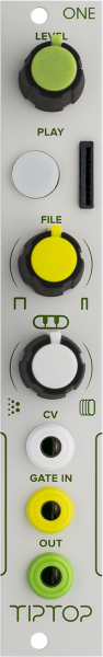 Tiptop Audio ONE - сэмпл-плеер со сверхнизкой задержкой. Он отличается от других проигрывателей семплов тем, что обрабатывает биты цифрового звука как непрерывно управляемый электрический поток. ONE предлагает несколько режимов работы, основным из которых является режим триггера со сверхмалой задержкой, который извлекает аудиоданные без добавления какой-либо искусственной обработки, такой как удаление щелчков, перекрестное затухание, эквалайзер или нормализация усиления. В этом режиме проигрыватель способен воспроизводить 24-битные 96 кГц без интерполяции аудиоданных. С задержкой всего 0,25 мс с момента срабатывания триггера ONE предлагает гармонично плотный, чистый и детальный звук. Pitch - это основной элемент управления с двумя доступными режимами: Free Pitch позволяет точно настроить скорость воспроизведения, отлично подходит для добавления тонких эффектов вибрато или диких эффектов скорости ленты; Quantized Pitch преобразует CV в стандартную 12-тональную систему на 3,5 октавы и идеально подходит для мелодического контента. CV также можно использовать для последовательного просмотра файлов с SD-карты. Дополнительный запас по мощности в основе ONE делает возможными такие функции, как Gated Playback, Looping и Triggering с постепенным нарастанием и исчезновением звука, приспосабливая различные типы источников звука от петель ударных до полисинтезирующих аккордов, источников шума и других, пока еще не придуманных, применений. ONE также может воспроизводить сигналы CV. Вставьте карту с сигналами LFO, случайным CV, наклонами и огибающими, чтобы получить целый набор новых возможностей управления и модуляции. ONE поставляется с SD-картой, на которой находится бесплатный набор из 60 звуков, созданных Glitchmachines. Дополнительные карты можно приобрести отдельно, каждая из которых содержит тщательно отобранный материал, содержащий до 256 звуковых файлов. Использовать собственные библиотеки сэмплов или записи тоже просто: просто скопируйте 16- или 24-битные моно WAV-файлы на SD-карту, вставьте карту - и вперед.