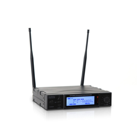 AuraSonics STAGE 201DR - это одноканальный цифровой приёмник, работающий в диапазоне частот 660-690МГц. Для защиты от потери сигнала в следствие переотражений радиоволн и интерференции применяется разнесённый приём на 2 антенны. Активная в данный момент антенна отображается на дисплее. Частоты объединены в 5 групп с 20-ю предустановленными настройками в каждой. Шаг частот в группе составляет 300 кГц. Имеется возможность поиска соседнего свободного канала вверх или вниз по диапазону. В этом случае шаг сканирования составляет 100 кГц. Приёмник отображает состояние заряда батареи передатчика и включения режима Mute. Два линейных многосегментных индикатора показываются уровень радиочастотного и звукового сигнала. Поддерживается программирование передатчиков по инфракрасному порту, при этом на передатчик передаётся информация о канале, группе и частоте сигнала, а также уровень мощности передатчика низкий или высокий. Модель STAGE 201DR имеет аналоговый регулятор выходного уровня звукового сигнала. Выходные коннекторы балансный XLR и небалансный Jack.