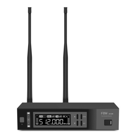 FBW A12R - одноканальный рэковый диверсивный приёмник радиосистемы. Работает в диапазоне 512-537 МГц. Доступна FM-модуляция. Передает диапазон частот от 60 Гц до 16 кГц.