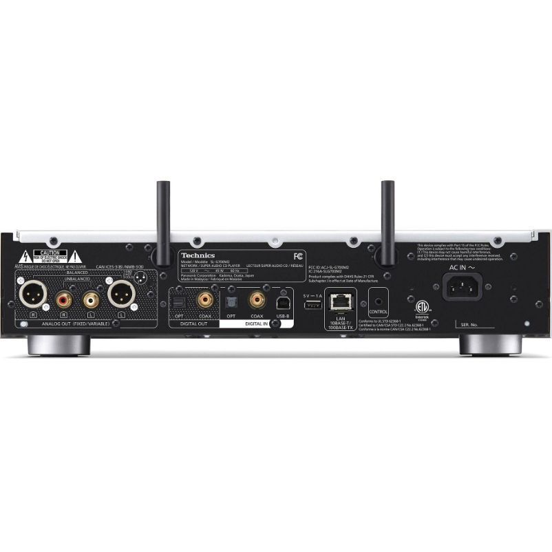Technics SL-G700M2EE - SACD/CD-проигрыватель. Аппарат изготовлен на стальном шасси, а его боковые и фронтальная панели сделаны из алюминия (толщина последней составляет 7 мм). Транспортный механизм расположен по центру, что обеспечило равномерное распределение механической нагрузки и устранение резонансов. Лоток загрузки диска сделан из алюминия и обладает значительным весом для стабильного перемещения диска. Кроме воспроизведения компакт-дисков Technics SL-G700M2 также можно использовать как ЦАП для внешних источников. С этой целью устройство оснащено коаксиальным, оптическим и USB-B входами. Схема конвертора в проигрывателе выполнена на базе микросхемы ES9026PRO в двойной моноконфигурации, которая обеспечивает обработку PCM-сигнала с параметрами до 32 бит/ 384 кГц и DSD до 11,2 МГц. Для получения максимальной точности воспроизведения CD-Audio сигнал с них подвергается конверсии до частоты дискретизации 192 кГц. Для прослушивания музыки с USB-накопителей в Technics SL-G700M2 имеется соответствующий интерфейс. Наиболее широкий доступ к различному аудиоконтенту в модели предоставляет стриминговая платформа с подключением к сети по Ethernet или Wi-Fi. Здесь есть поддержка DLNA, Chromecast, AirPlay2, популярных онлайн-сервисов. Предусмотрен в проигрывателе и Bluetooth, существенно упрощающий соединение с портативными устройствами. Аппарат способен воспроизводить файлы в форматах High resolution как с USB, так и по сети. Technics SL-G700M2 оснащен балансными и небалансными выходами, сигнал на которых может иметь фиксированный или регулируемый уровень. В последнем случае проигрыватель можно подключать напрямую к усилителю мощности или активным колонкам, что делает систему более компактной. Для прослушивания музыки непосредственно с плеера предусмотрен высококачественный выход на наушники.