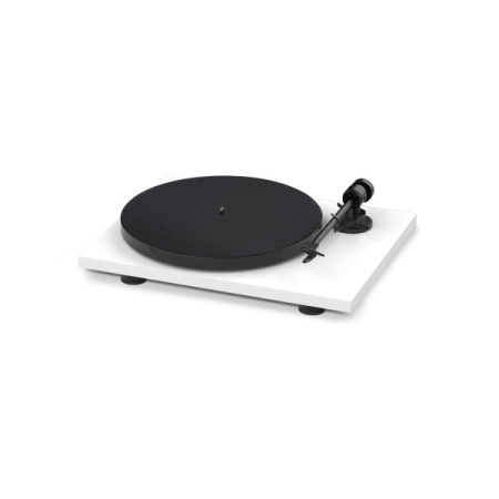 Pro-Ject E1 Phono OM-5e - виниловый проигрыватель со встроенным фонокорректором. Модель отвечает всем требованиям, предъявляемым к проигрывателям класса Hi-Fi. Pro-Ject E1 Phono (OM-5e) выполнен на сплошном шасси из композитного волокна, которое изготавливается с высокой точностью на станке с ЧПУ. На проигрыватель установлен полноразмерный опорный диск, изготовленный из ABS. Он точно сбалансирован для устранения вибраций и обладает хорошими демпфирующими характеристиками. Pro-Ject E1 Phono (OM-5e) комплектуется фетровым ковриком для дополнительной защиты пластинки и гашения вибраций. В модели используется пассиковый привод, при этом двигатель передает вращение на субдиск, расположенный под основным опорным диском. Такое решение позволило дополнительно снизить вибрации, а также сделать внешний вид проигрывателя более лаконичным. В модели используется электронное переключение скорости вращения пластинки 33,1/3 или 45 об./мин. Pro-Ject E1 Phono (OM-5e) оснащен прямым алюминиевым тонармом длиной 8,6 дюйма. На тонарм штатно установлен качественный MM-звукосниматель Ortofon OM-5e, положение которого тщательно настроено на заводе. Таким образом, пользователю после распаковки остается только выполнить простую начальную сборку проигрывателя, и можно приступать к прослушиванию пластинок. В комплект поставки входит пылезащитная крышка.