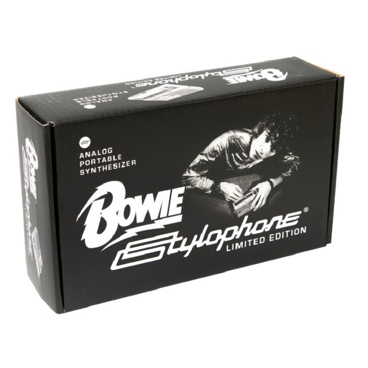 Dubreq Bowie Stylophone - аналоговый монофонический миниатюрный стилофон лимитированной серии с логотипом Дэвида Боуи. Оснащен трехпозиционным переключателем тона и эффектом вибрато. Оснащен встроенным динамиком и разъемом для наушников. Работает от трех батареек типа АА. В комплект входит памятный буклет, посвященный музыке Дэвида Боуи, где представлены ранее не публиковавшиеся снимки от Тони Висконти, Марка Адамса и архивные фото самого артиста.