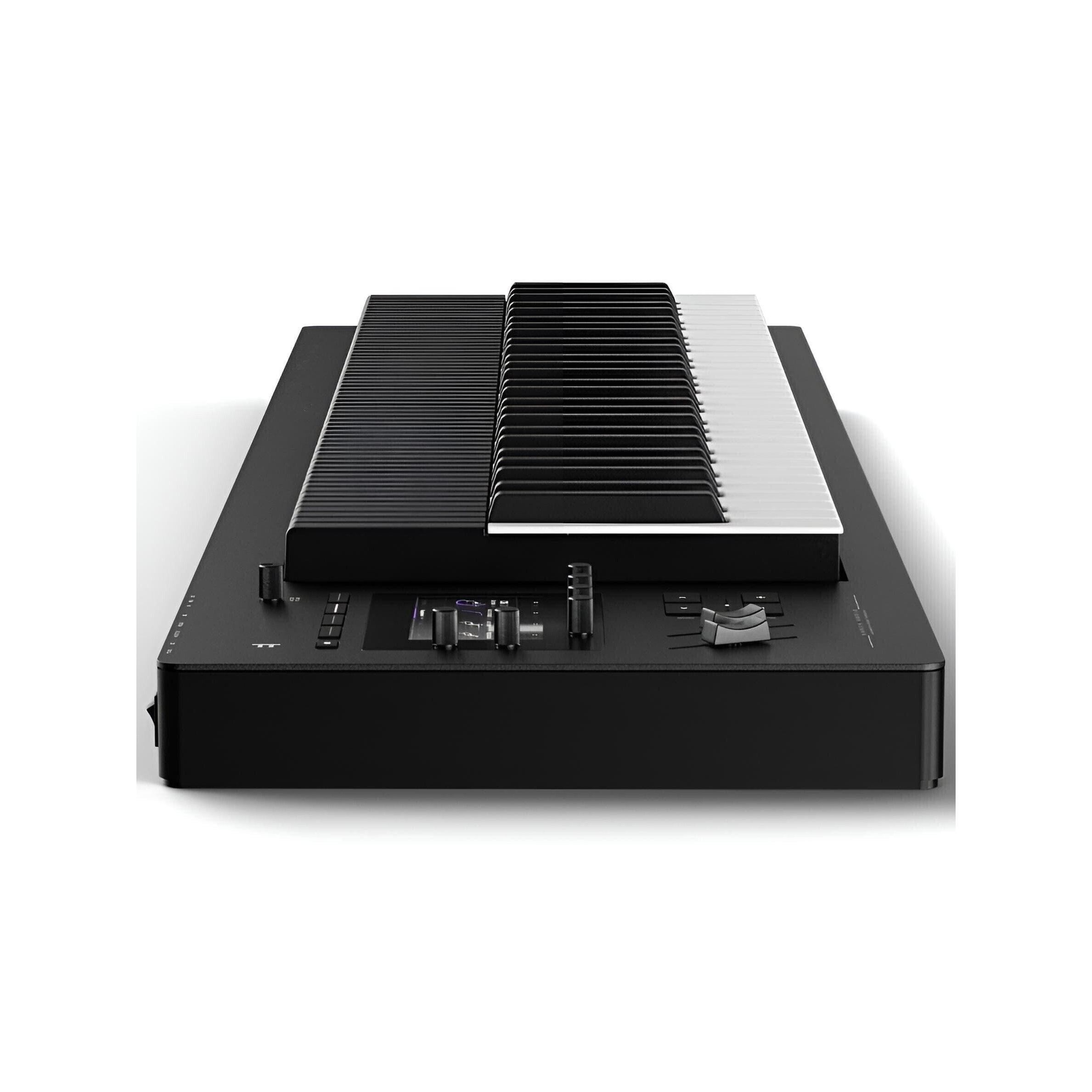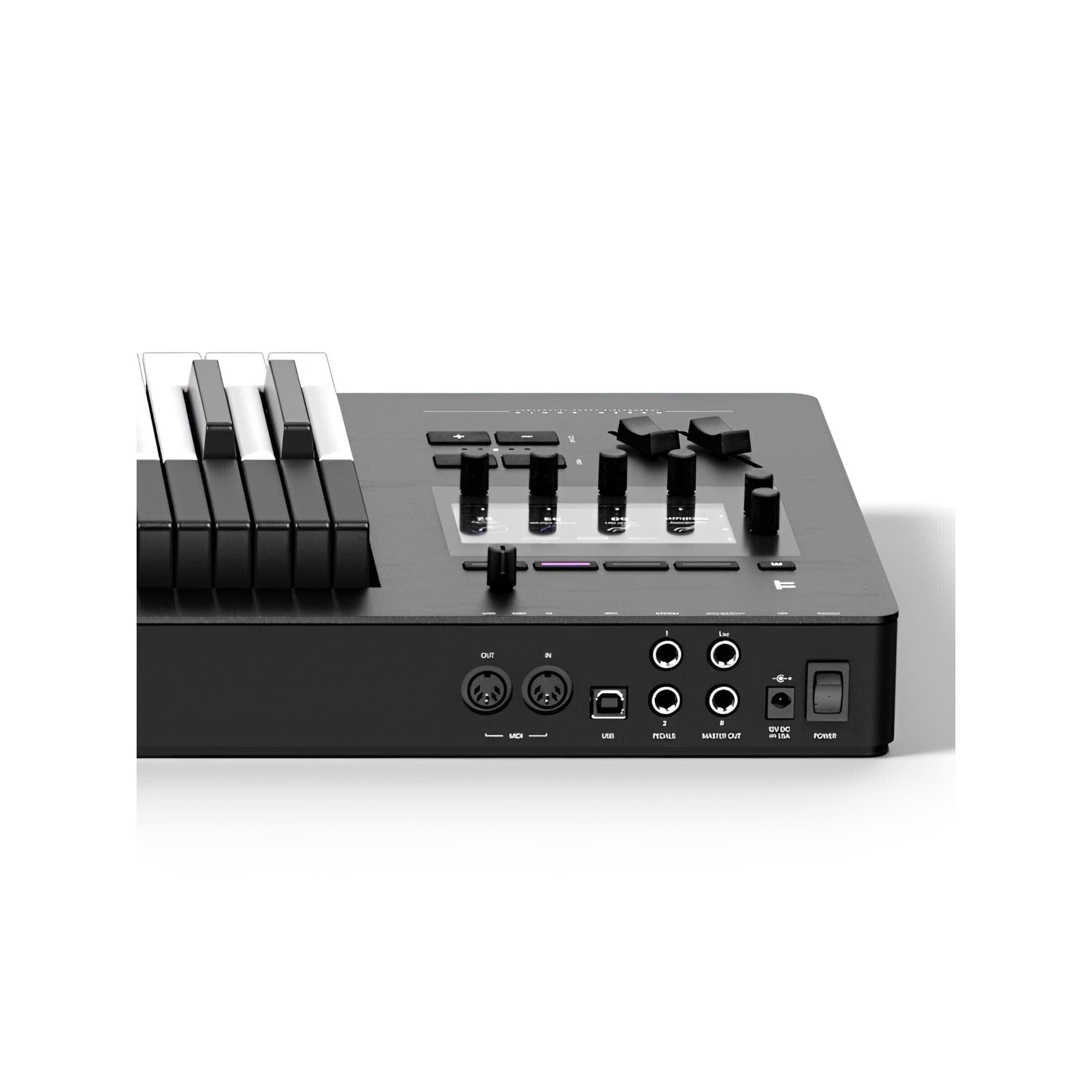 Expressive E Osmose 61 - полифонический синтезатор с 61-клавишной панелью и поддержкой MPE. Оснащён 5 программируемыми осцилляторами, 5 мультирежимными фильтрами, 5 огибающими, генераторами шума, двумя банками фильтров и 4 дилеями. Синтезатор поддерживает методы генерации звука, такие как физическое моделирование, частотная модуляция (FM), субтрактивный и аддитивный синтез. Osmose может использоваться как автономный синтезатор, MPE MIDI-контроллер и обычный MIDI-контроллер. Osmose подключается через USB-B порт. Также имеются разъёмы для подключения педальных входов, стереовыхода и выхода для наушников. Предусмотрено более 500 пресетов с настраиваемыми макросами, разделенные на 30 пользовательских плейлистов с 128 пресетами в каждом и метками избранного. Полифония синтезатора достигает 24 голоса, а управление звуком осуществляется через цветной ЖК-экран, слайдеры высоты тона и модуляции. MIDI-подключение осуществляется через DIN MIDI In, MIDI Out/Thru и USB Type B.