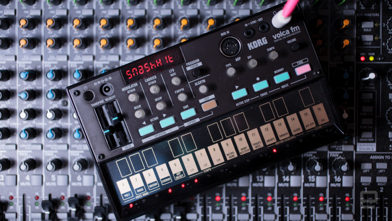 KORG Volca FM - rомпактный цифровой FM-синтезатор с секвенсором/ Данная модель была представлена компанией KORG в 2016 году. Синтезатор оснащен 3-голосyой полифонией, который отличается достаточно компактными размерами, что идеально подойдет для дополнения к другим приборами серии Volca. Также, как и вся серия Volca данный синтезатор оснащен встроенным динамиком и возможностью работать от батареек, что позволяет использовать его в любое время и в любом месте. Особенностями данной модели являются: встроенный арпеджиатор, режимы Mono/Poly/Unison, а также улучшенный секвенсор с возможностью записи автоматизации и функциями "Warp Active Step" и "Pattern Chain". В синтезаторе используется современный движок, основанный на легендарном DX7. Данный движок оснащен 6-ю операторами и 32 алгоритмами, что позволяет достичь желаемого звука. В синтезаторе реализован эффект Chorus, который добавляет больше пространства и живости в звучание. На передней части синтезатора располагается MIDI-вход, регуляторы Transpose, Velocity, Модулятор(Attack/Decay), Carrier (Attack, Decay), LFO (Rate, P.Depth), а также разъёмы Sync In/Out для синхронизации с другими устройствами. KORG Volca FM является компактным синтезатором с уникальным FM звучанием, который подойдет как новичкам, так и продвинутым пользователям.