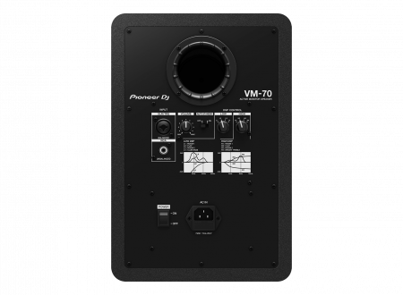 Pioneer VM-70 – 6,5-дюймовый активный монитор. Монитор обеспечивает чистый звук с мощными и глубокими басами. Динамик можно настроить под параметры любого помещения, например, воссоздать клубный звук во время диджеинга или обеспечить плоскую частотную характеристику. Монитор оснащен усилителем класса D и процессором DSP на 96 кГц для широкополосного воспроизведения звука. Новые купола вуфера из арамидного волокна повышенной прочности обеспечивают глубокий звук и на 30 процентов легче традиционных элементов. Vortex Bass Accelerator гарантирует отличный низкочастотный звук без нежелательных вибраций. Рупор постоянной направленности создает обширное единое пространство для восприятия звука. Форма рупора и кромка вуфера спроектированы таким образом, чтобы плоская частота воспроизведения легко переходила на твитер, формируя естественный звук. Монитор оснащен DSP: на задней панели динамиков расположены 2 кнопки: эквалайзер низких частот и эквалайзер высоких частот, для каждой доступны 4 режима. Жесткий алюминиевый передний экран толщиной 4 мм дополнительно подавляет резонанс и снижает вибрации, а защитный корпус твитера снижает риск повреждения высокочастотной мембраны.