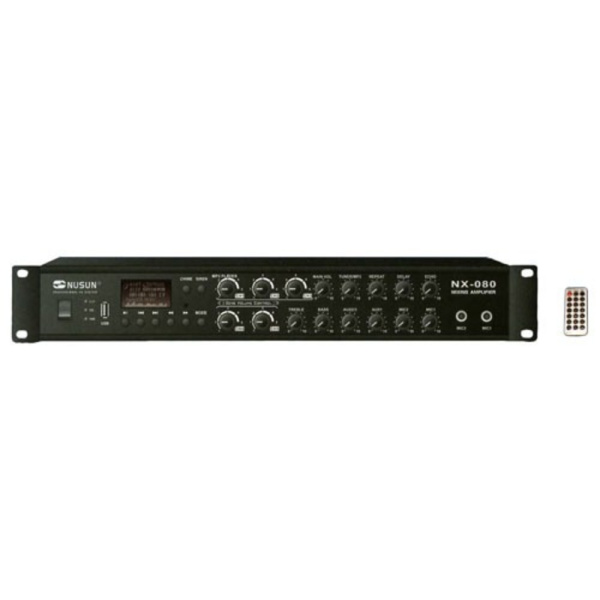 Трансляционный 5-ти зонный микшер-усилитель мощностью 240 Вт. FM -тюнер. LCD-дисплей. Дистанц.управление . USB-интерфейс с поддержкой MP-3, WMA файлов. 2 микр. ( 1,4" Jack ) и 2 лин. входа( RCA ) 1лин. выход(RCA) Индивидуальное подключение зон с регулировкой уровня громкости ( с индикацией ). Индивидуальная регулировка входного уровня на каждом входе. Функция приоритета. Сигналы оповещения. 6 степеней защиты. Принудительное охлаждение. Память на отключение. Цвет: черный. Спецификация: Номинальная выходная мощность 240 Вт. Частотный диапазон 100 - 16 кГц. Выход на АС 70/100 В, 4-16 Ом Потребляемая мощность 300 Вт Размер 2U Габариты 485 х 380 х 90 мм Вес 8,5кг