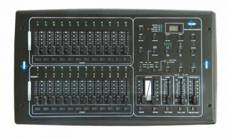 Ross DMX Control 1224 - диммерный пульт DMX. Пульт имеет 24 канала DMX, 4200 программируемых сцен с защитой паролем и 48 программируемых чейзов с защитой паролем. Доступно микширование чейзов, A / B страницы и переключение полярности (2-, 3+, / 2+, 3-). Пульт имеет 24 канальных фейдера, независимые Speed & Fade фейдеры, имеется Full-On кнопка, аудиовход и встроенный микрофон с регулятором чувствительности, а также LCD дисплей. Кроме того, имеется клавиша управления дым-машиной. Контроллер совместим с MIDI-стандартом. Приборы отлично подойдет для управления освещением сцен, театров, клубов, баров и других площадок разного размера.